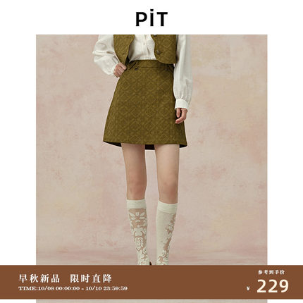 PIT暗纹刺绣高腰A字短裙半身裙女2025春季新款时尚包臀显瘦直筒裙
