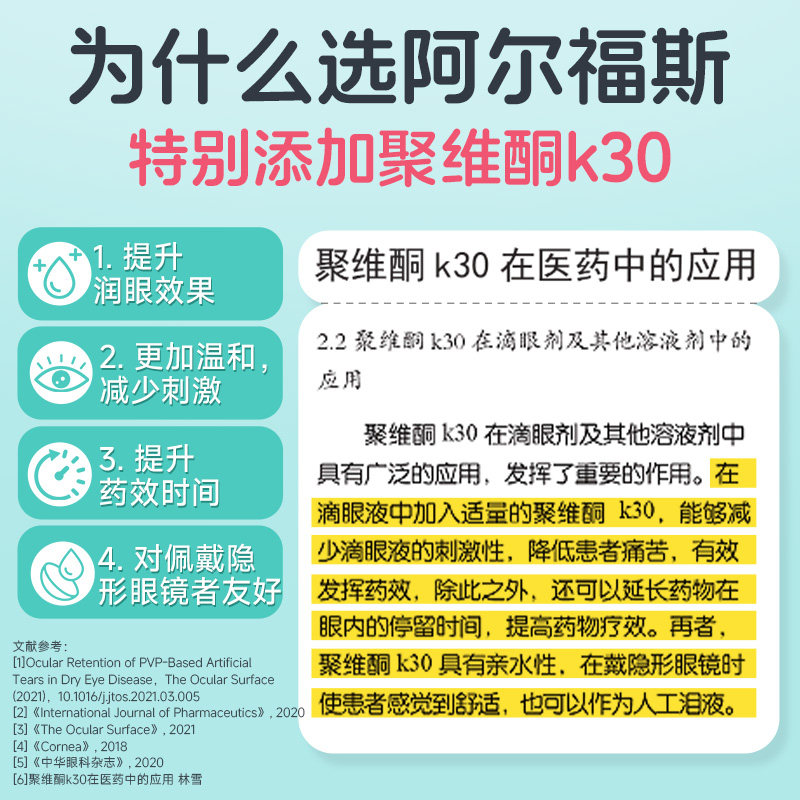 阿尔福斯聚乙烯醇滴眼液0.4ml*5支/盒干眼症无菌温和润眼不刺激