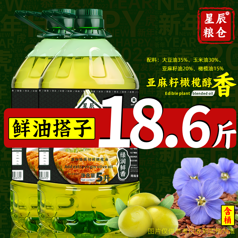 橄榄油亚麻籽油大豆油玉米油四宝组合冷榨锁鲜食用油煎炒烘焙凉拌