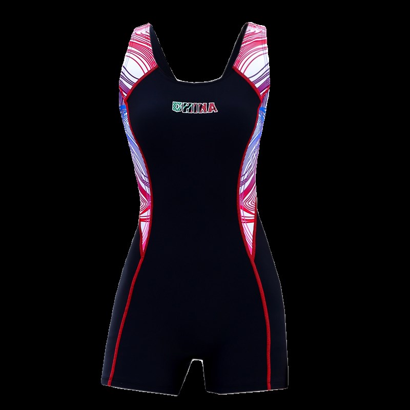 新款泳衣女连体平角镂空背带胸垫内衬加厚竞技运动游泳装高弹遮肉