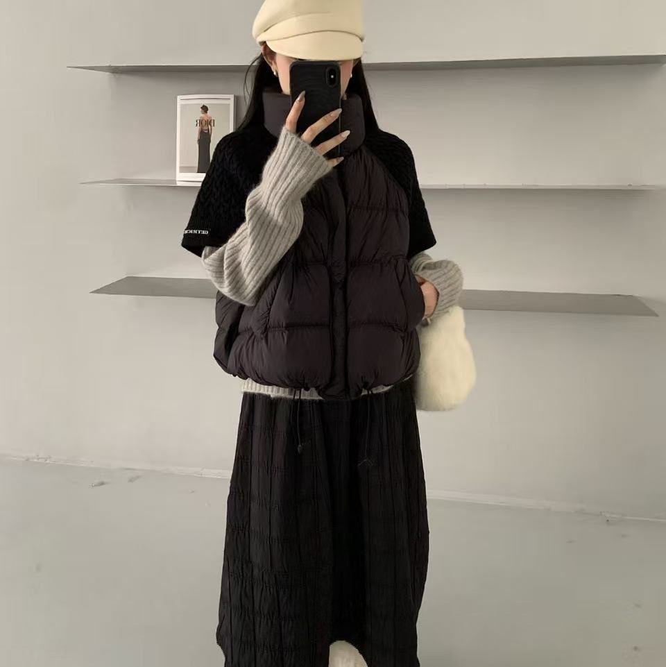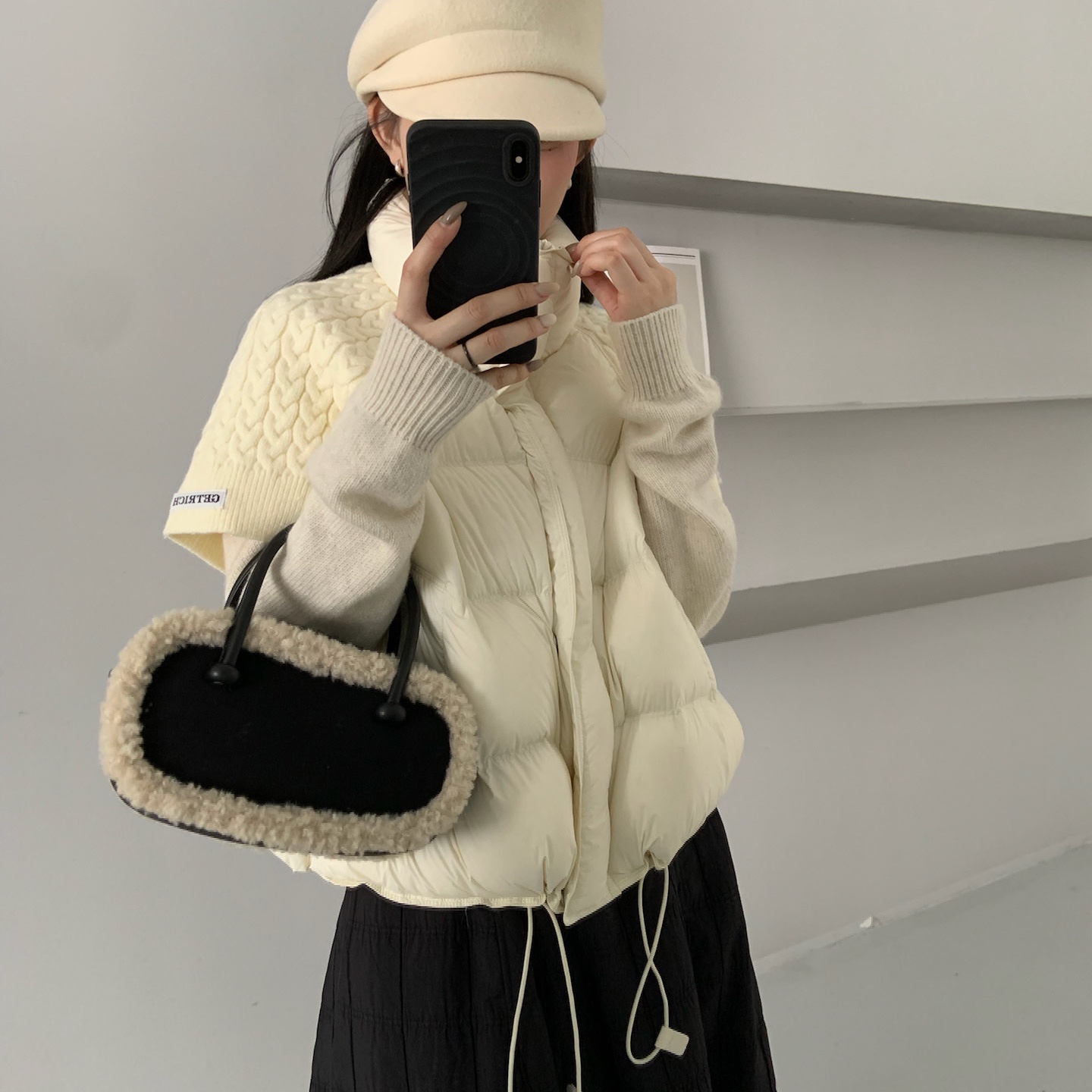 2025冬季新款针织拼接立领羽绒服马甲女短款加厚保暖90白鸭绒外套
