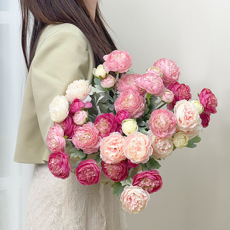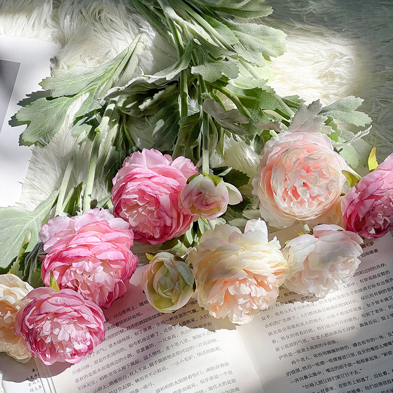 高品质露莲仿真花客厅餐桌室内绢花摆件洋牡丹装饰花 北夏家居