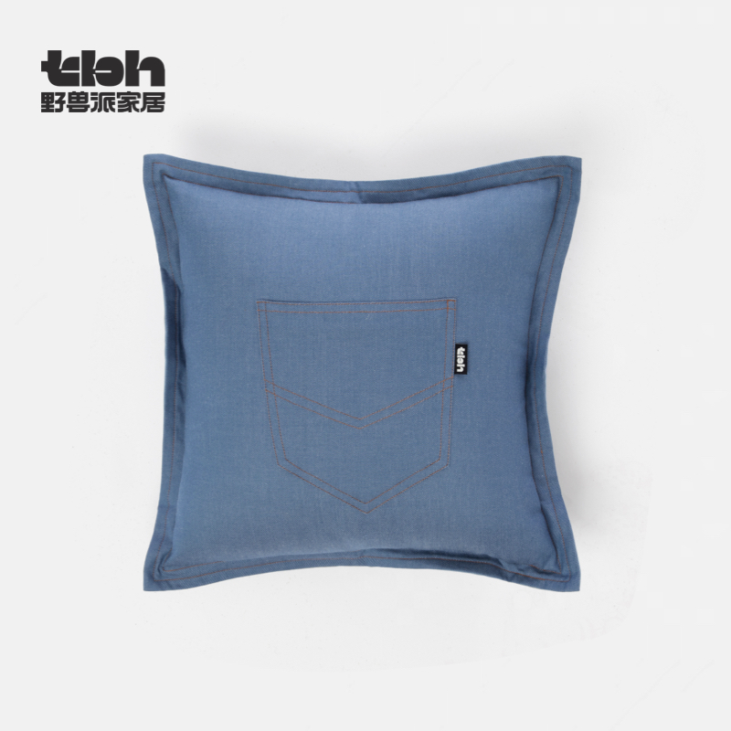 tbh野兽派家居牛仔口袋双色抱枕客厅沙发靠垫午睡枕头办公室靠枕