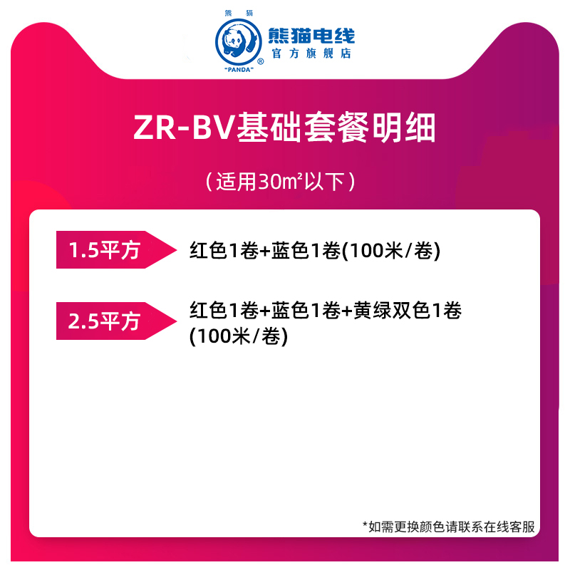 熊猫电线 ZR-BV基础家装套装 阻燃型单芯硬线99.99% 铜欧盟环保