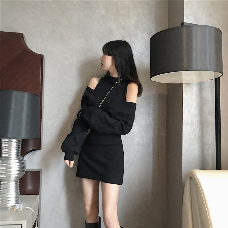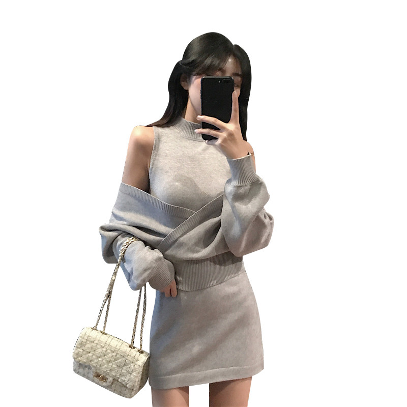 春秋针织裙高级性感修身包臀短裙连衣裙女辣妹套装毛衣裙子两件套