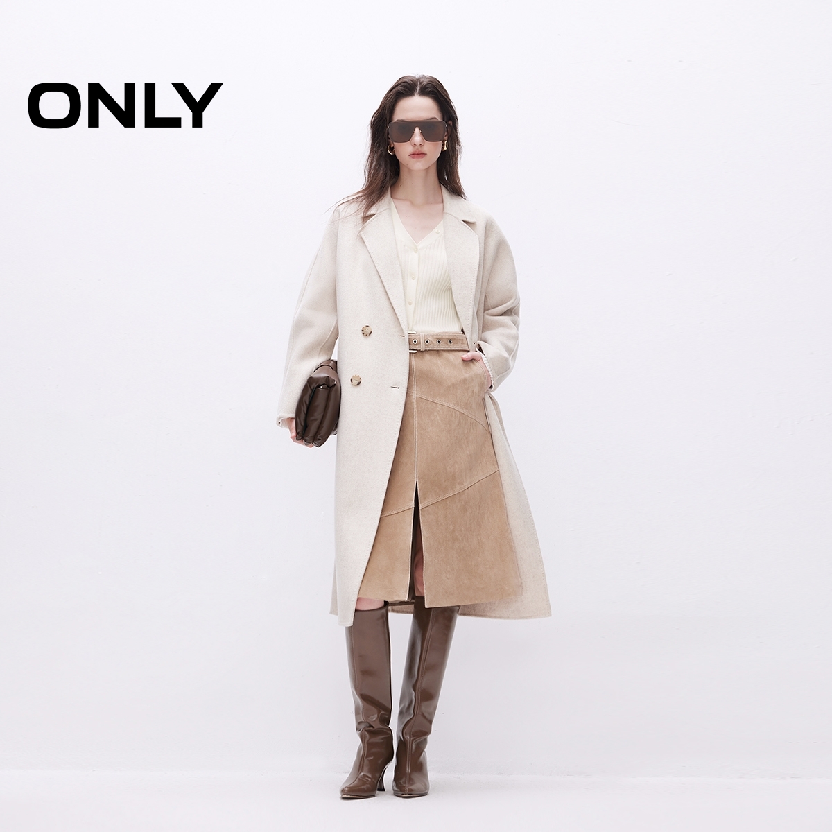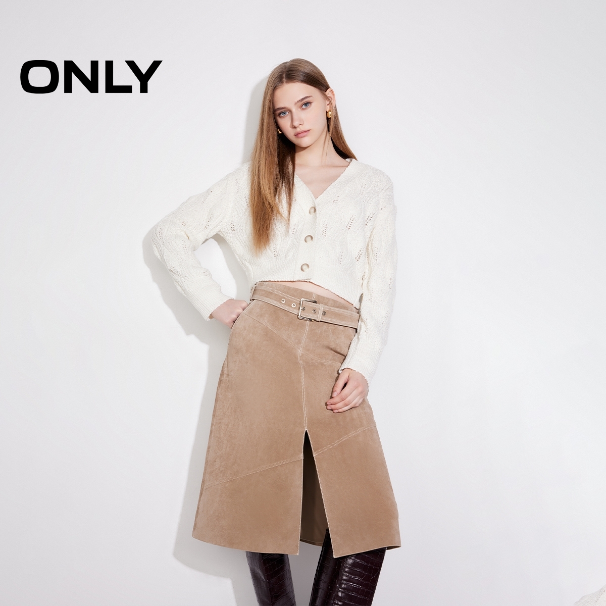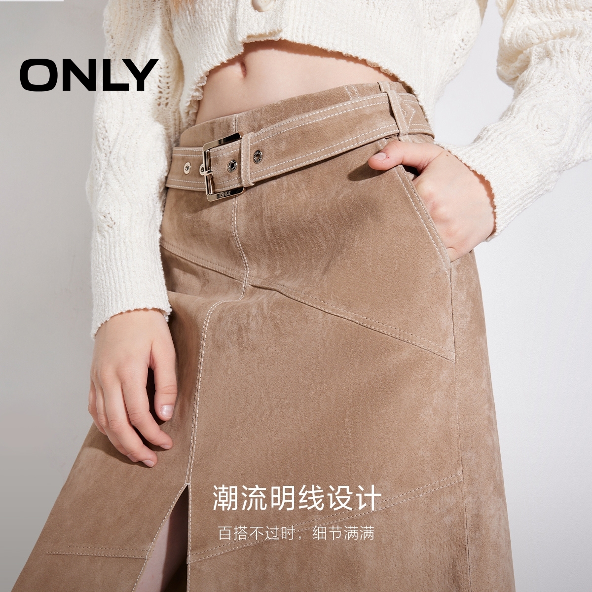 ONLY中长款开叉皮裙半身裙