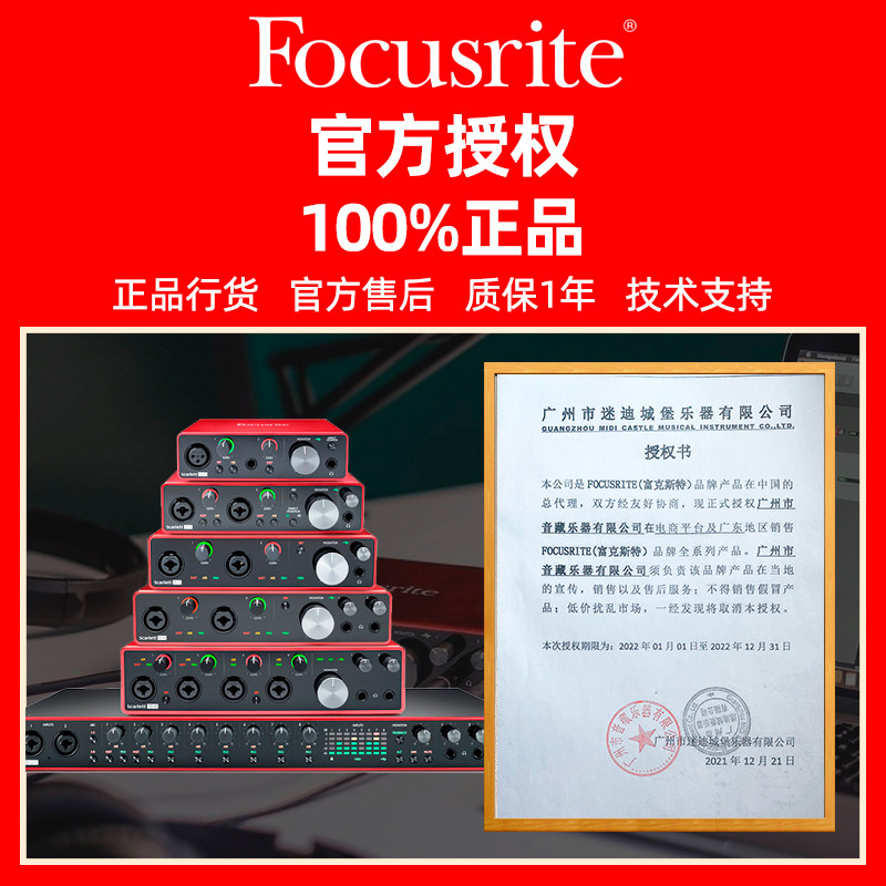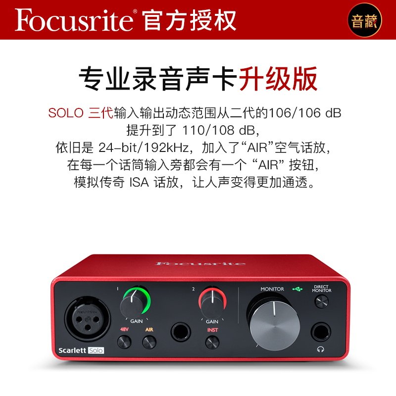 focusrite福克斯特声卡 SOLO3 2i2 三代录音配音有声书设备套装