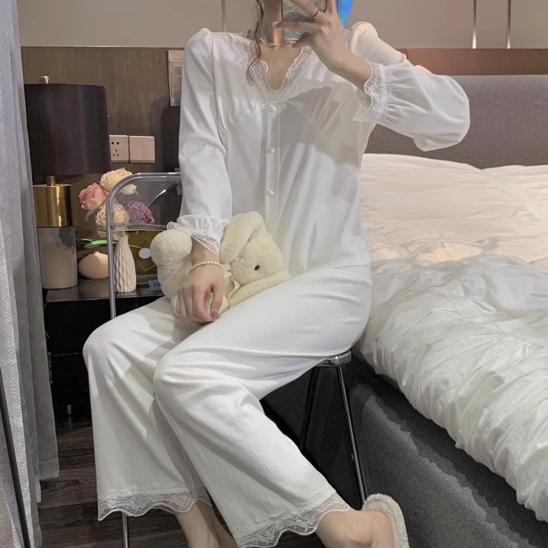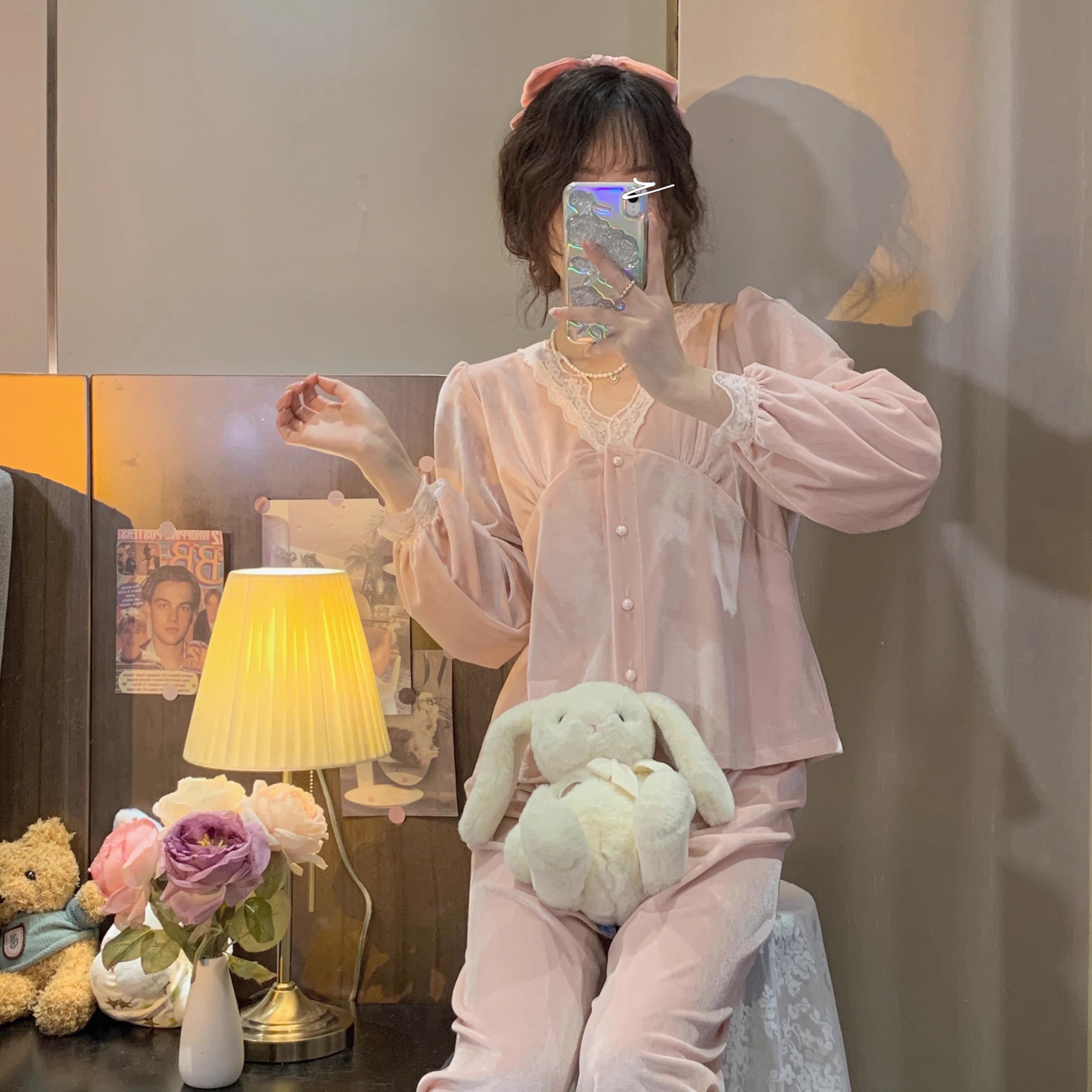 纯欲蕾丝2025新款高级感金丝绒睡衣女秋季女款长袖家居服套装纯棉