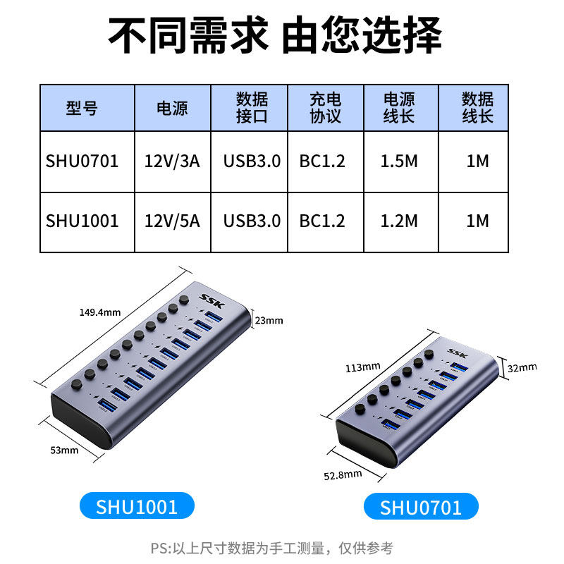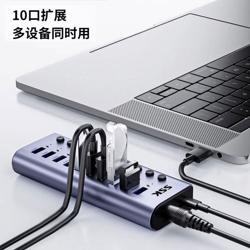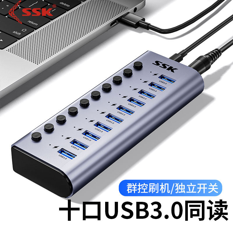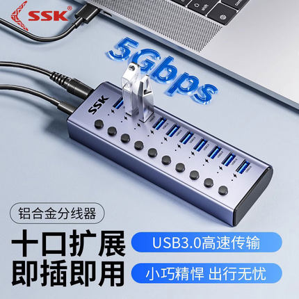 SSK/飚王USB3.0扩展器电脑10/7口分集线器带电源多功能多接口