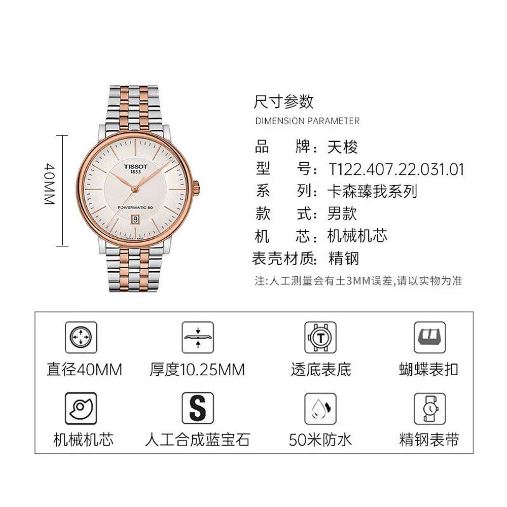 【海外版】Tissot天梭原装卡森系列机械男腕表T122.407.22.031.01