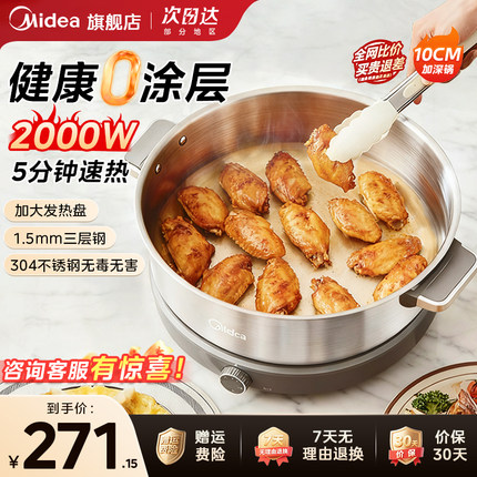美的电煎锅不锈钢电饼铛多功能分体式电火锅家用烙饼锅官方旗舰店