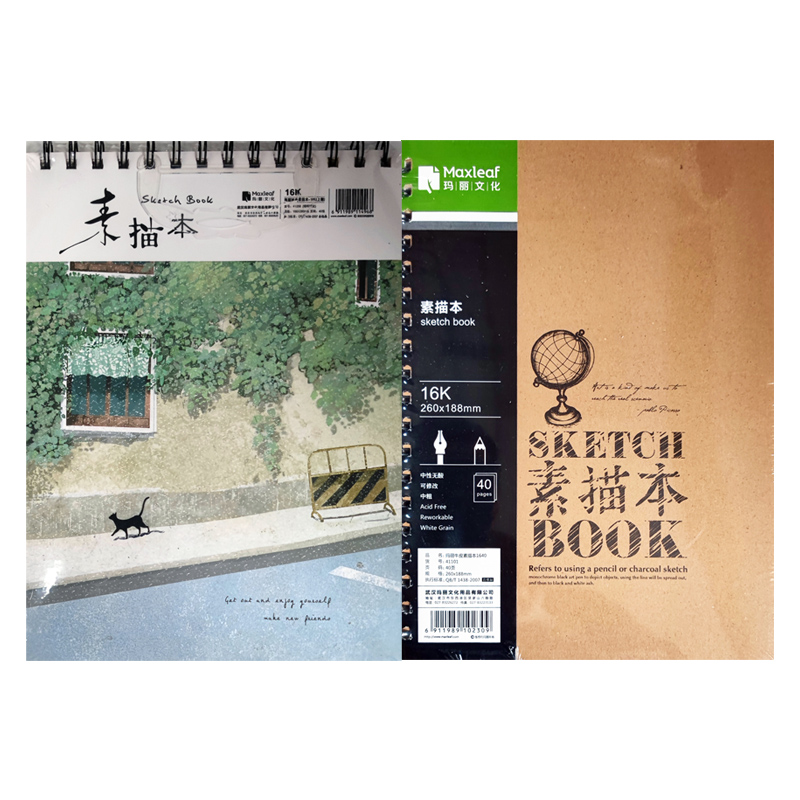 玛丽16K素描本素写时尚牛皮上翻侧翻188MMX260MM带硬纸板美术手绘