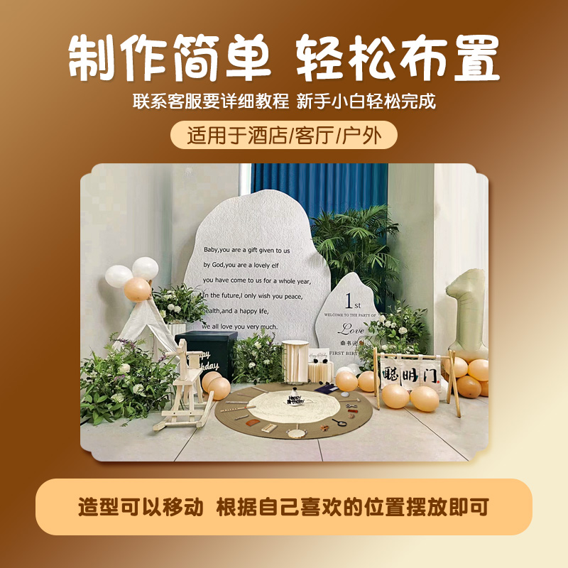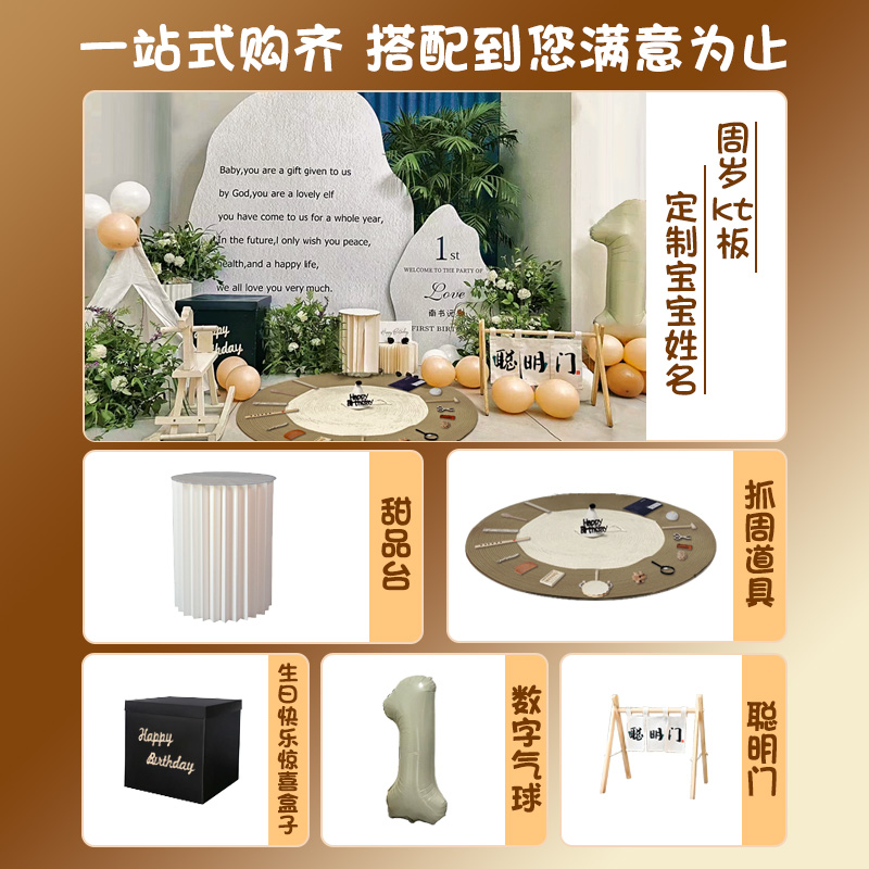 韩系式宝宝1周岁宴ins风生日布置装饰场景氛围感抓周礼背景墙kt板
