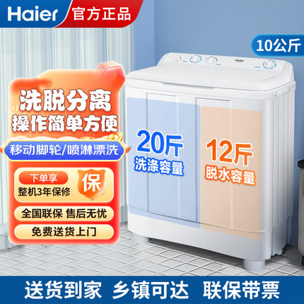 海尔10公斤双缸双桶半自动家用洗衣机动力水强力去污XPB100-628S