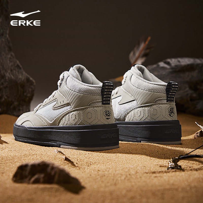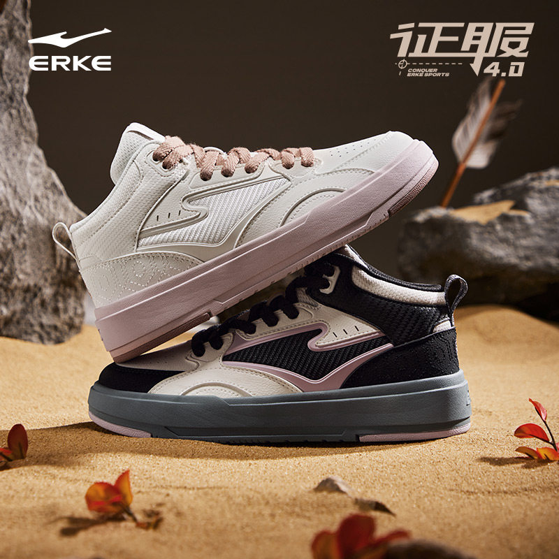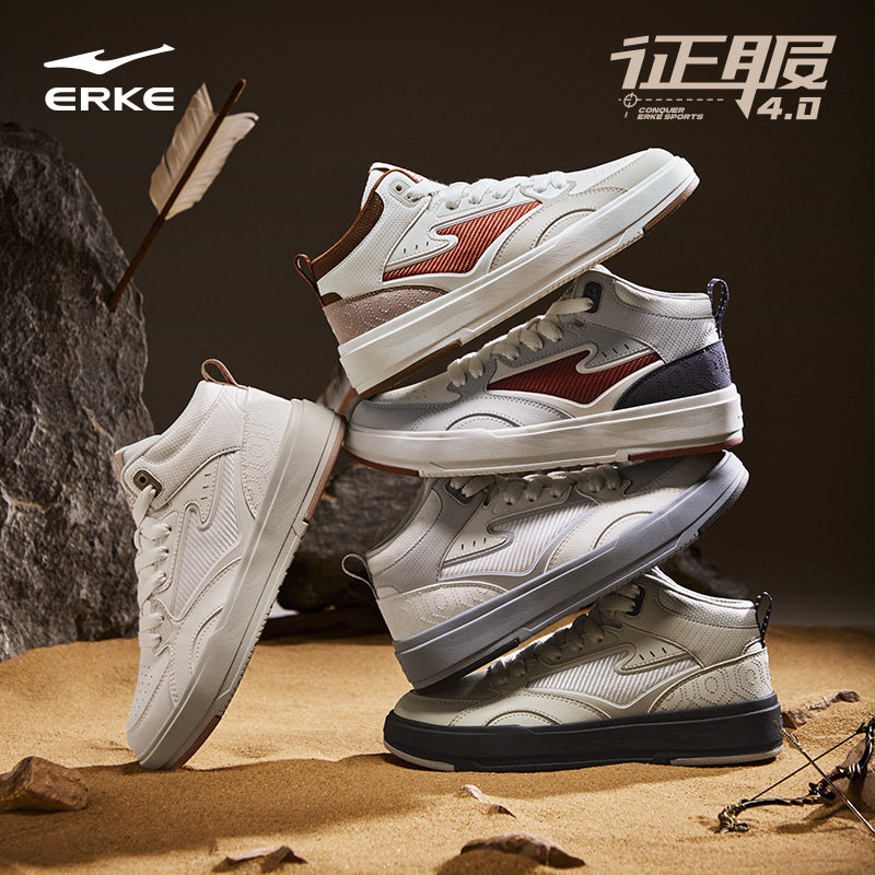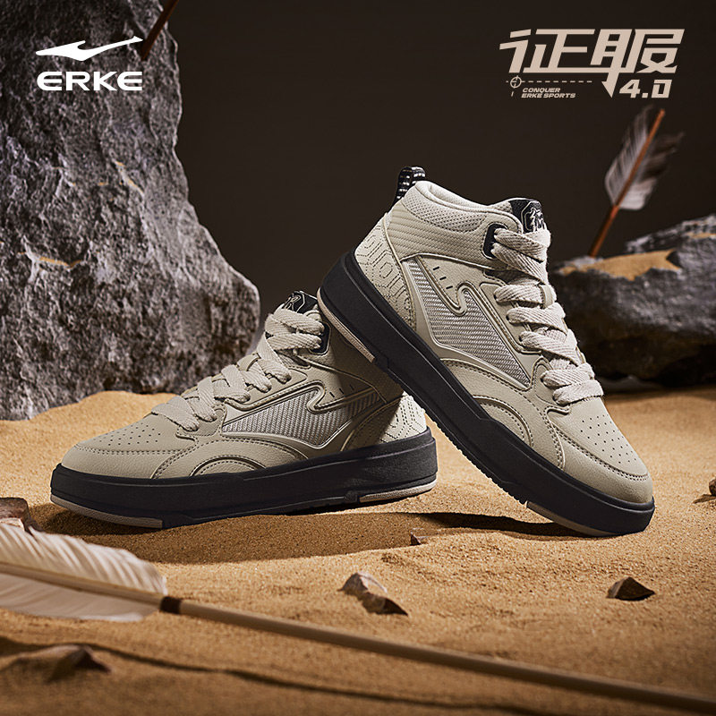 征服4|鸿星尔克板鞋高帮男鞋夏季皮面增高休闲鞋学生百搭运动鞋子