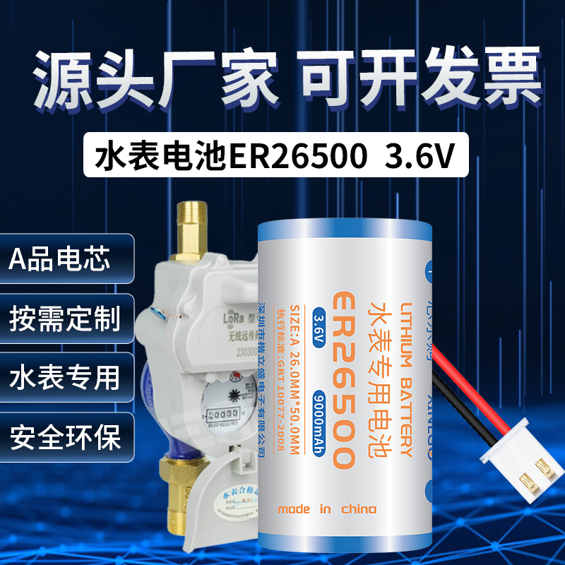 3.6V智能水表专用锂电池ER26500流量计量表物联网涡轮天燃气2号