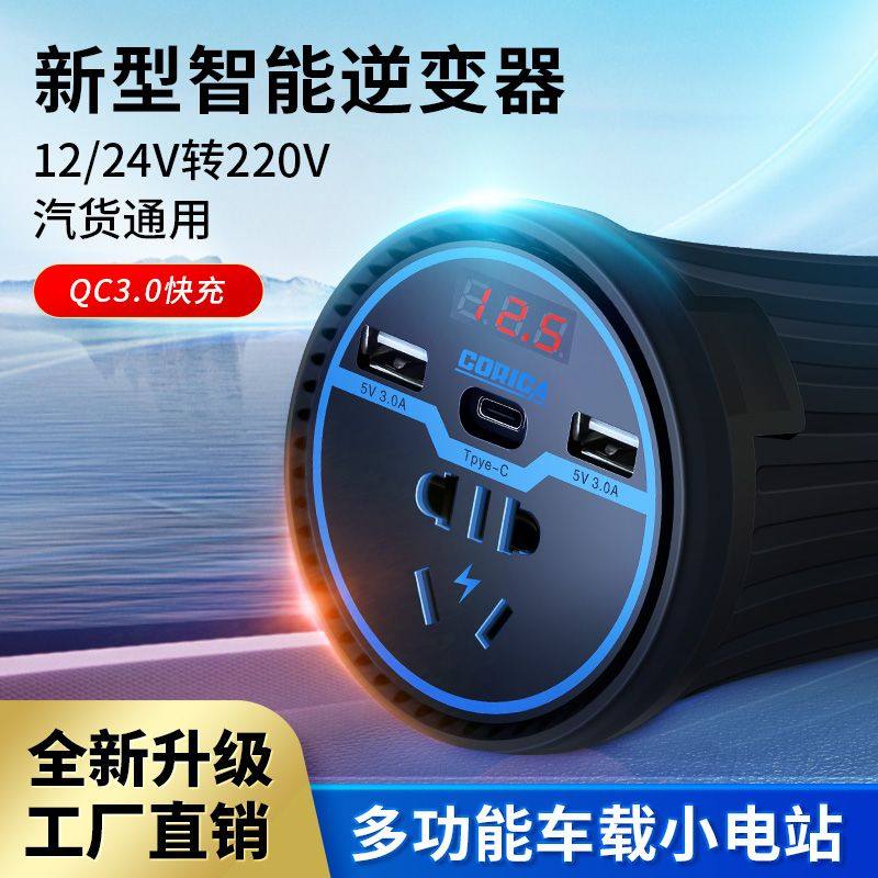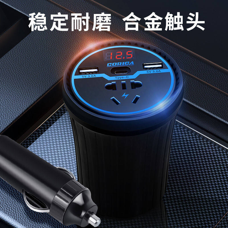 车载充电器杯型12V24V转220通用逆变转换器大功率点烟器插头快充