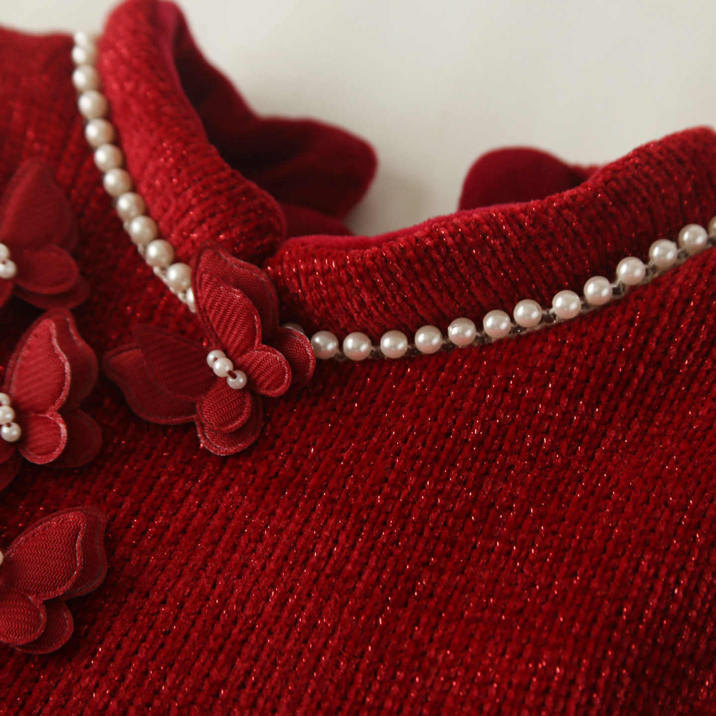 女童秋冬加绒新年红色旗袍裙