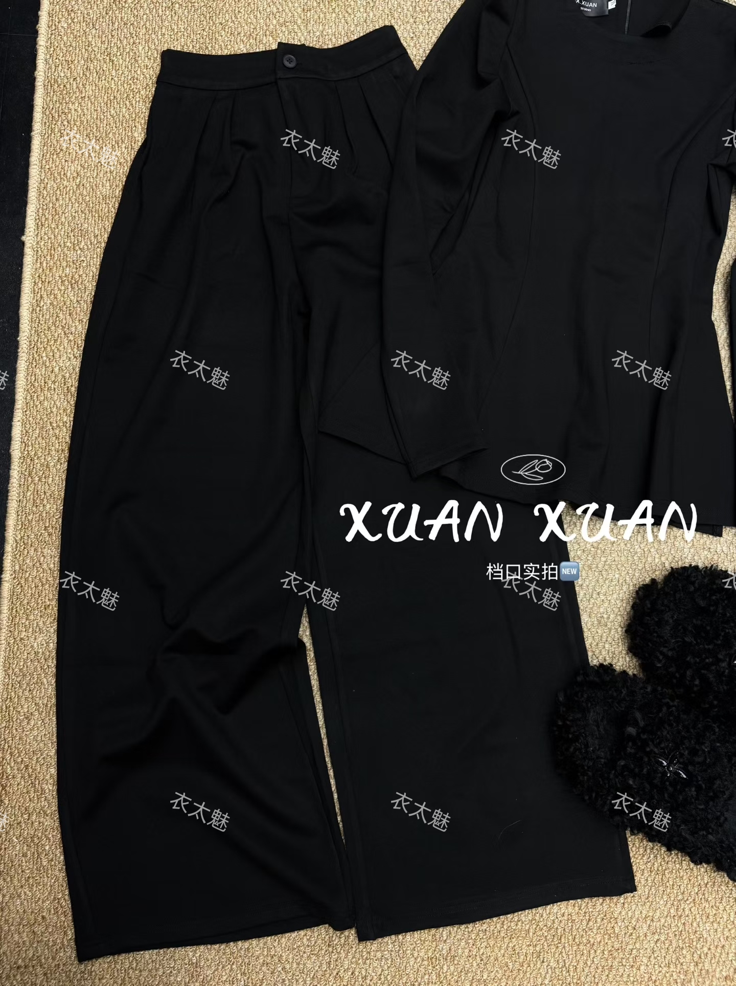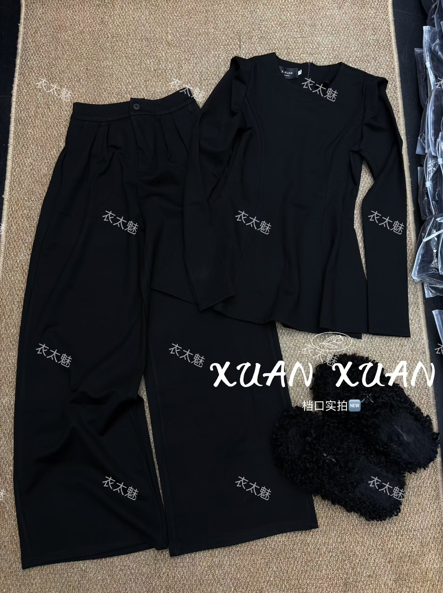 套装2025秋季新款时尚设计上衣阔腿裤两件套蚂蚁腰上衣阔腿裤套装