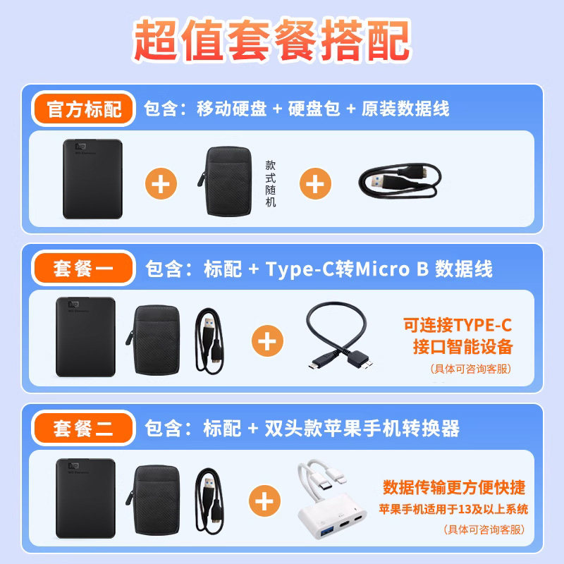 WD西部数据2t移动硬盘外接电脑机械存储1T4T5T6T手机大容量传输