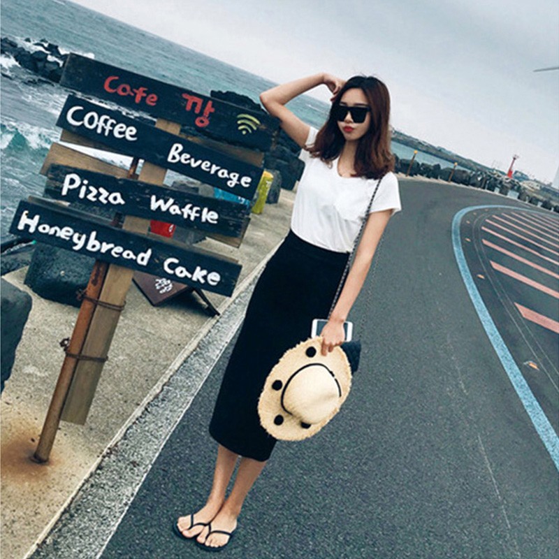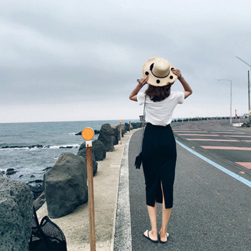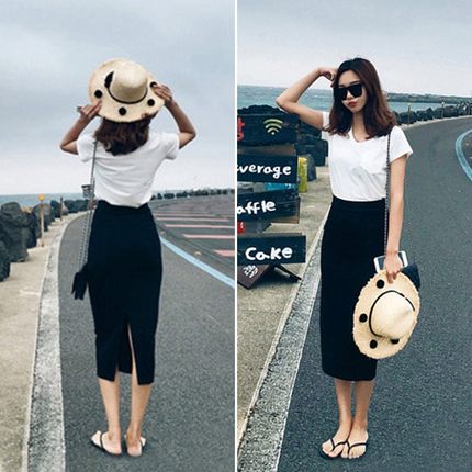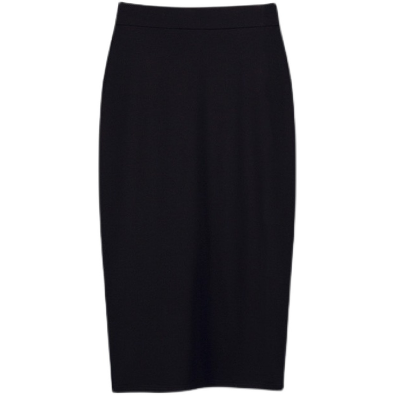 春秋款a字黑色开叉弹力一步裙下装高腰通纯色针织包臀半身中长裙