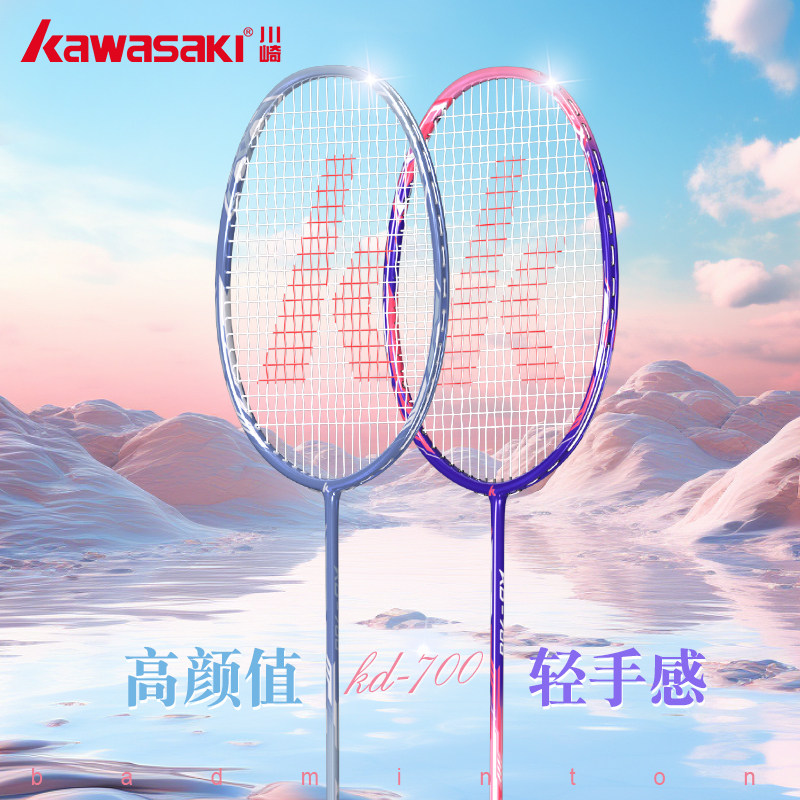 川崎羽毛球拍官方正品旗舰店双拍碳纤维一体轻量训练比赛耐打套装