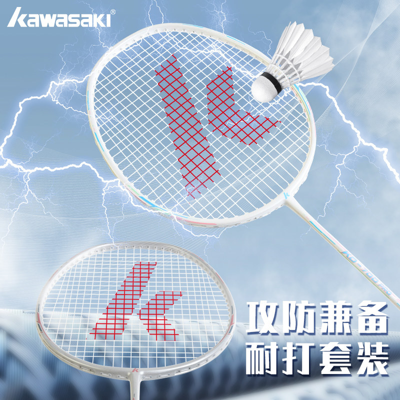 川崎羽毛球拍官方正品旗舰店双拍初学者耐用轻量训练比赛耐打套装