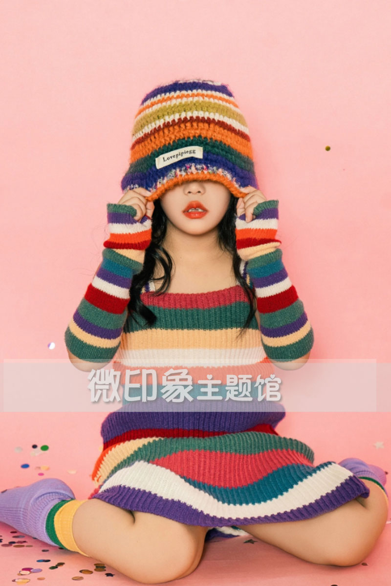 影楼潮童新款女孩圣诞冬季毛衣彩色时尚走秀舞台演出艺术主题服装
