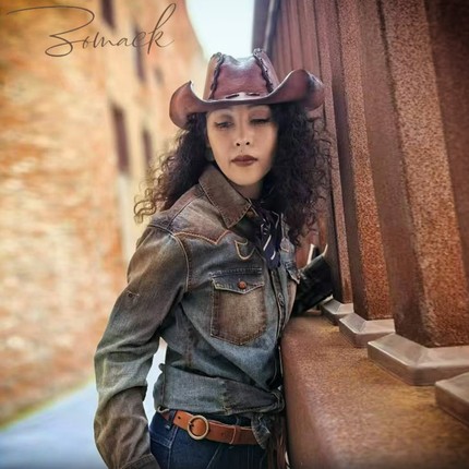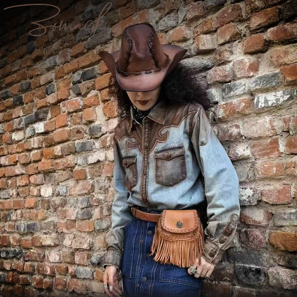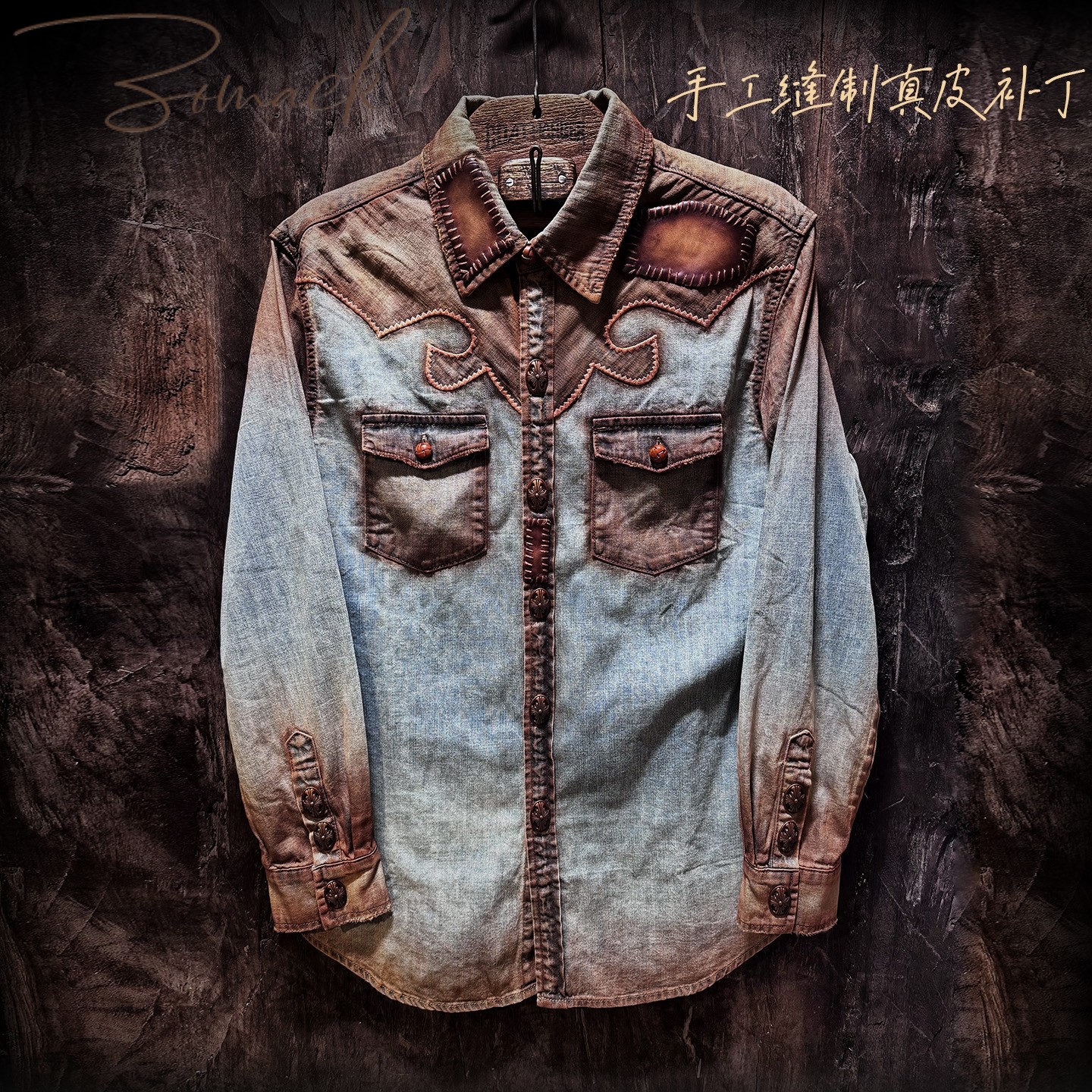 废土风男牛仔高级感衬衫长短袖手工女刺绣真皮纽扣机械师复古雅痞