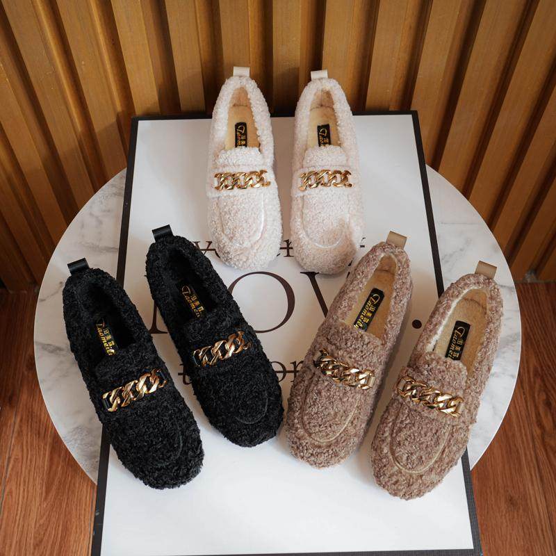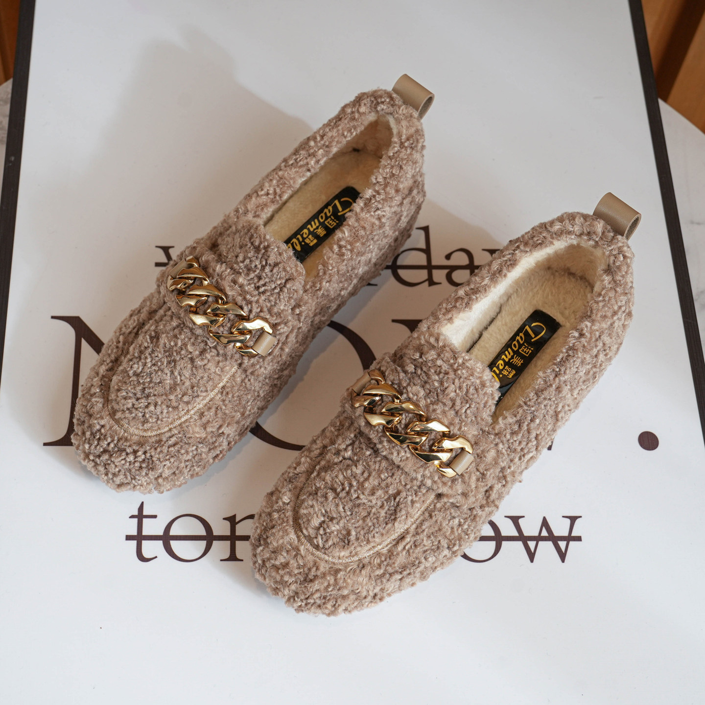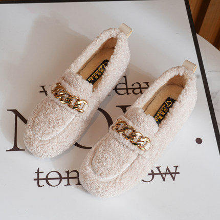 毛毛鞋女厚底羊羔毛豆豆鞋
