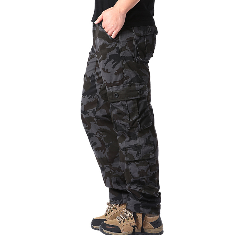 春秋季新款工装裤男士宽松纯棉直筒休闲长裤大码多口袋耐磨迷彩裤
