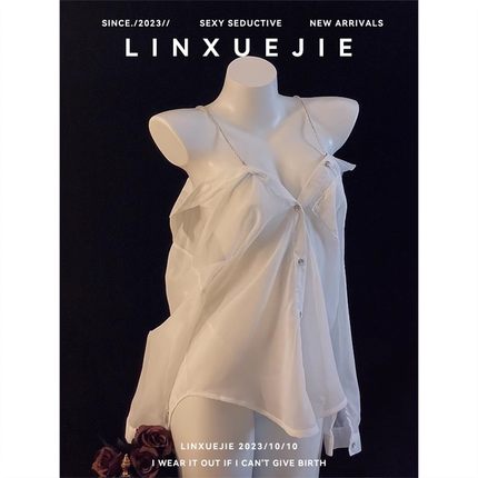 花房蜜语 纯爱男友风性感女款防晒冰丝白色衬衫家居服小心机睡衣