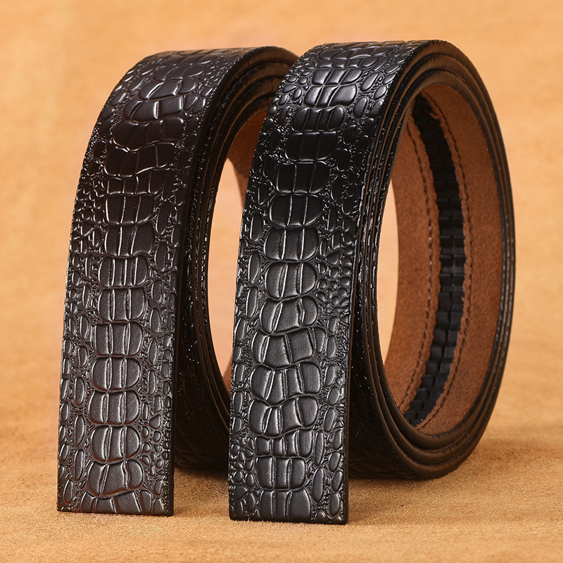 无头皮带自动扣中青年韩版腰带鳄鱼纹男士真皮带身不带头裤带条