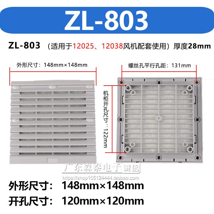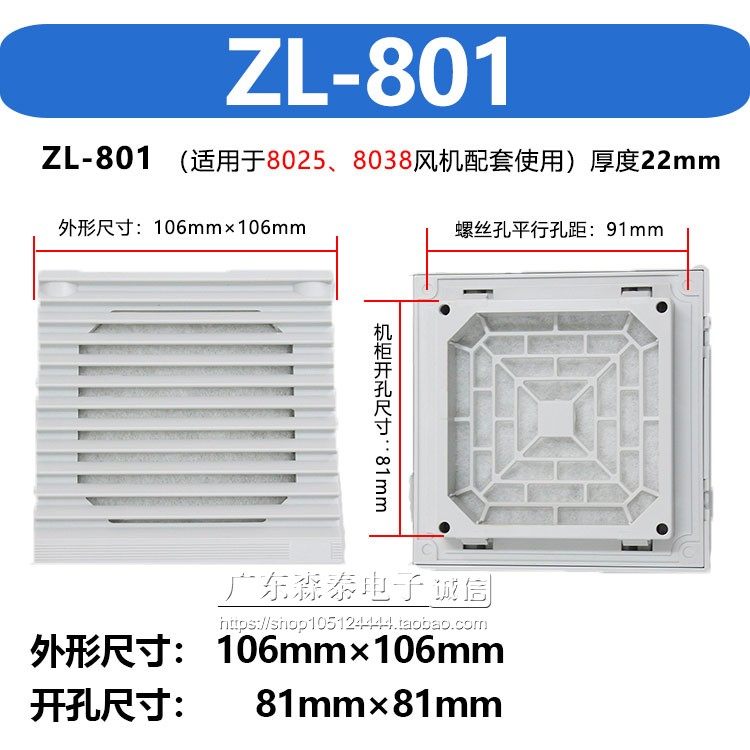 机柜配电柜散热风扇通风过滤网组ZL-801 8cm轴流风机百叶窗网罩80