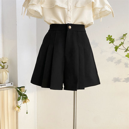 黑色百褶裙裤女夏休闲西装短裤高腰a字阔腿裤显瘦百搭防走光裤裙