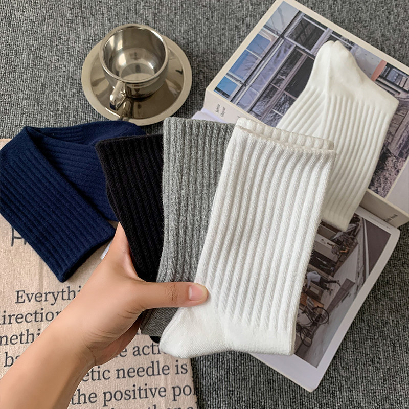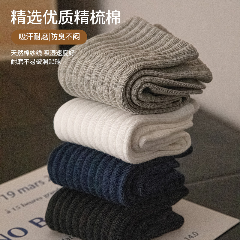袜子男 长筒纯棉春夏无骨粗线条白色中筒袜吸汗透气男生运动长袜