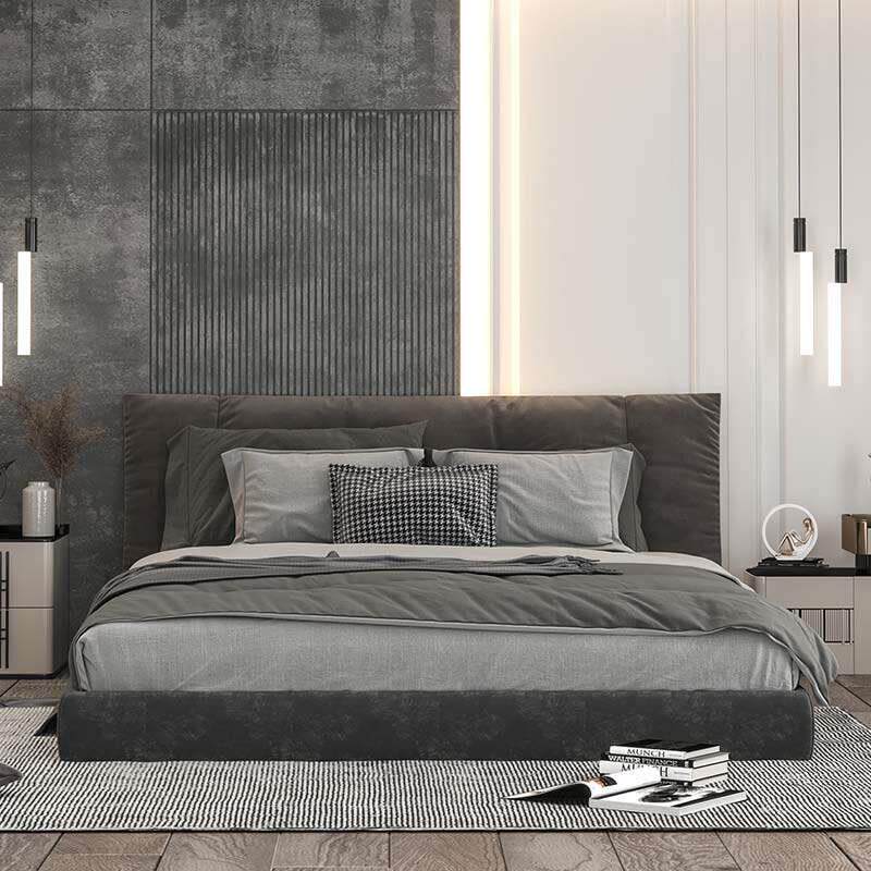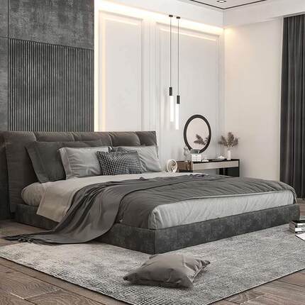 意式极简布艺床现代简约榻榻米床轻奢ins风床主卧双人床婚床软床