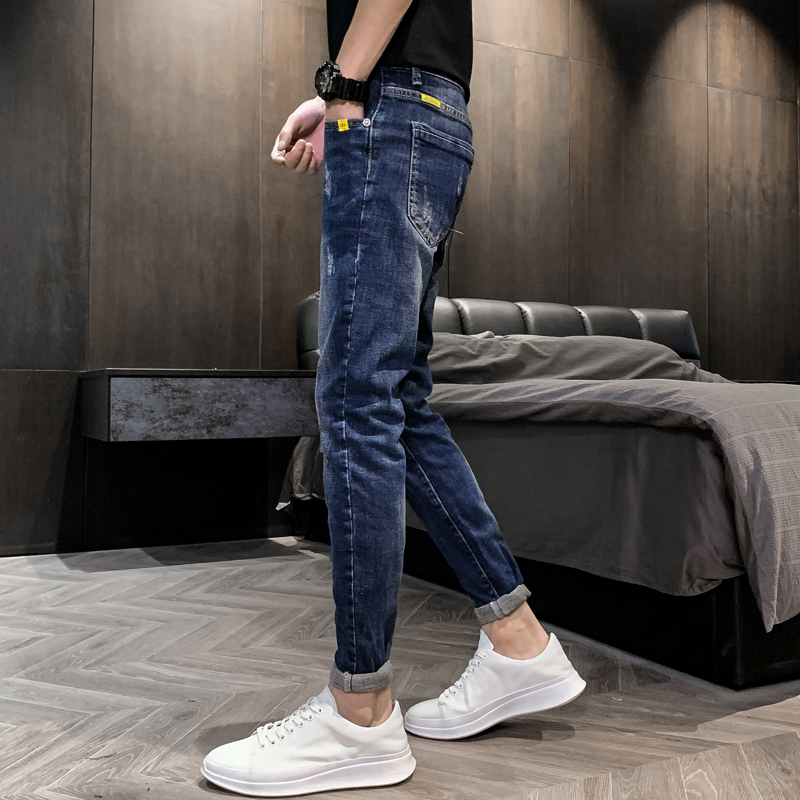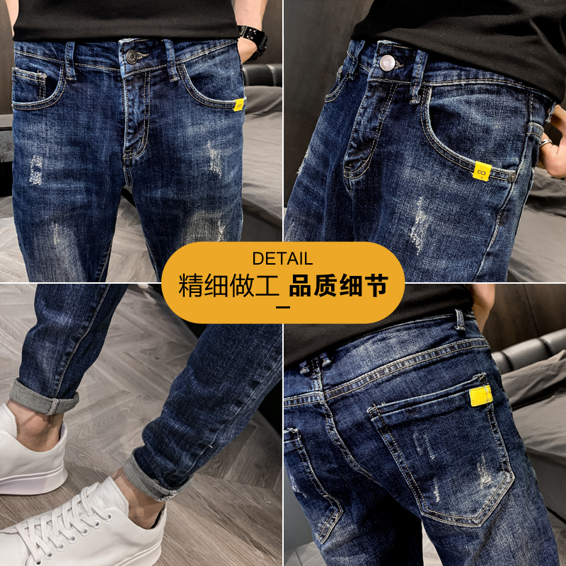 2025新款春秋季牛仔裤男士潮牌小脚休闲裤潮流九分弹力修身长裤子