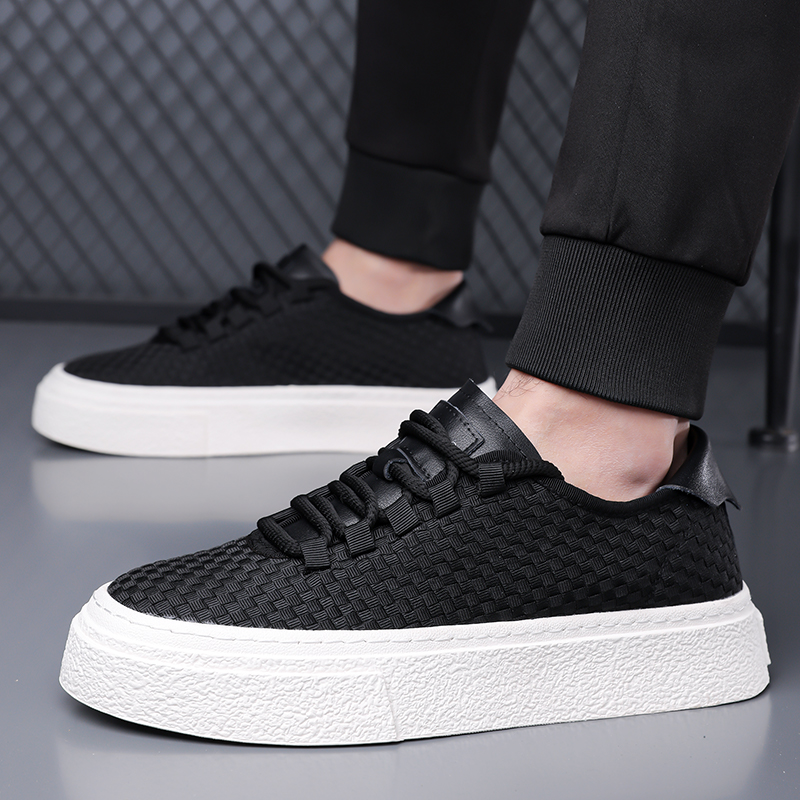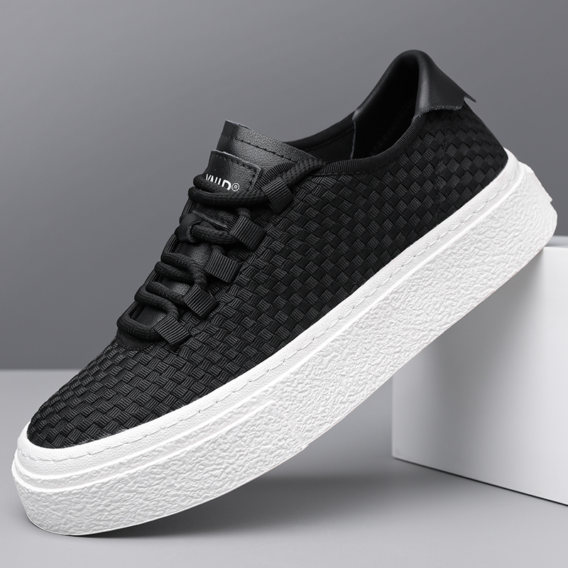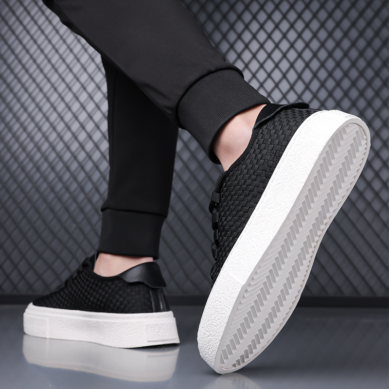 男鞋2025新款夏季透气潮流百搭厚底增高休闲板鞋时尚编织网面潮鞋