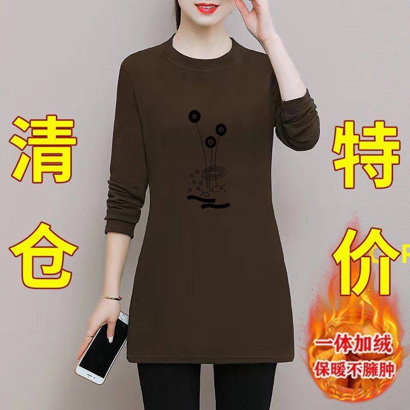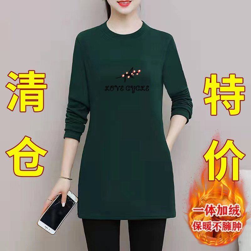 连衣裙新款长袖打底衫女士加绒加厚秋冬外穿中长款遮肚保暖妈妈装