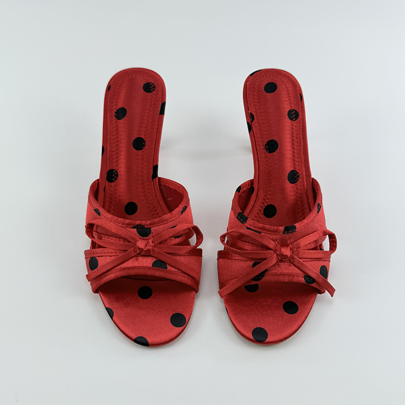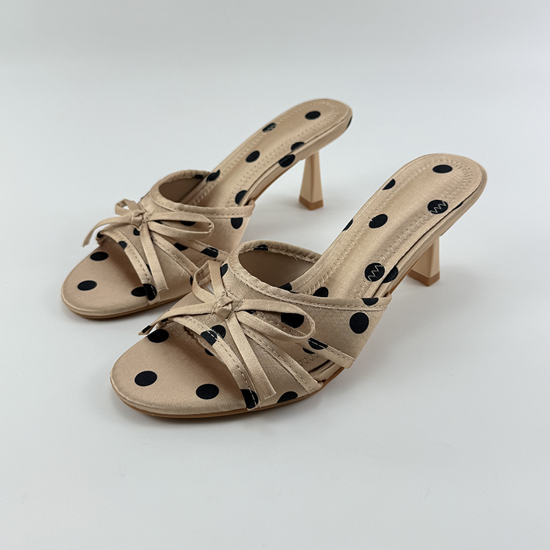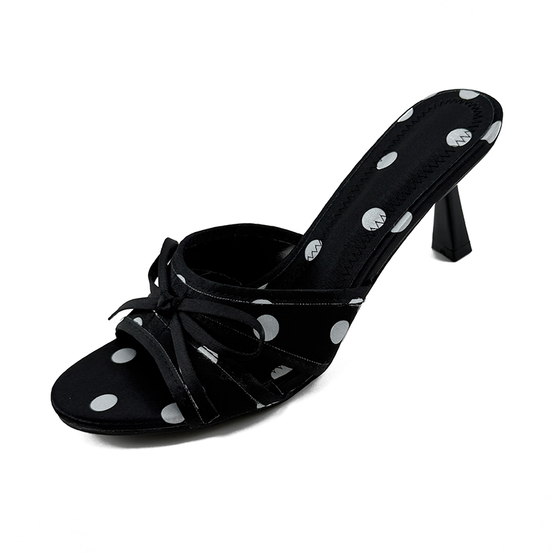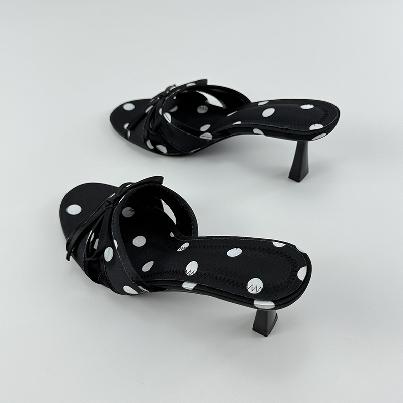 蝴蝶结高跟鞋女2025年夏新款波点法式气质镂空网纱凉鞋细跟凉拖鞋