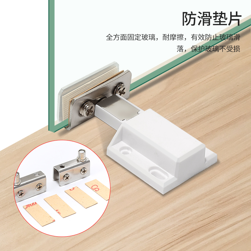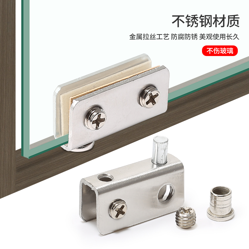 不锈钢免开孔玻璃合页上下转轴柜门夹配件无框钢化玻璃铰链磁碰
