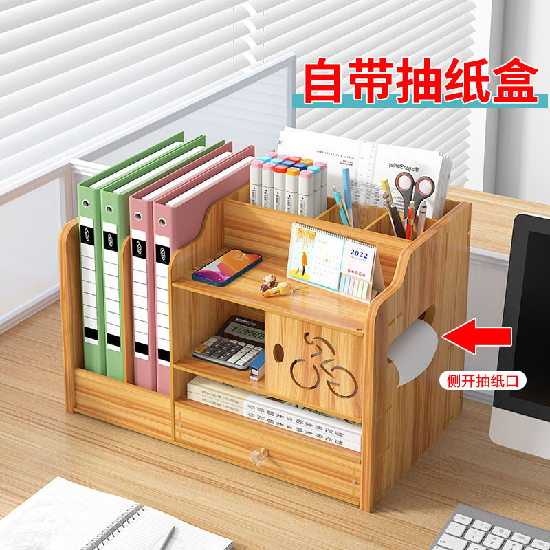 办公桌面收纳盒用品大号多层抽屉文件夹文具室木质储物书桌置物架