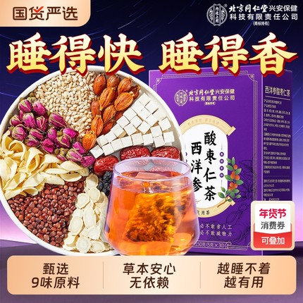 北京同仁堂酸枣仁百合茯苓茶助眠多梦睡眠质量差养生茶内廷上用