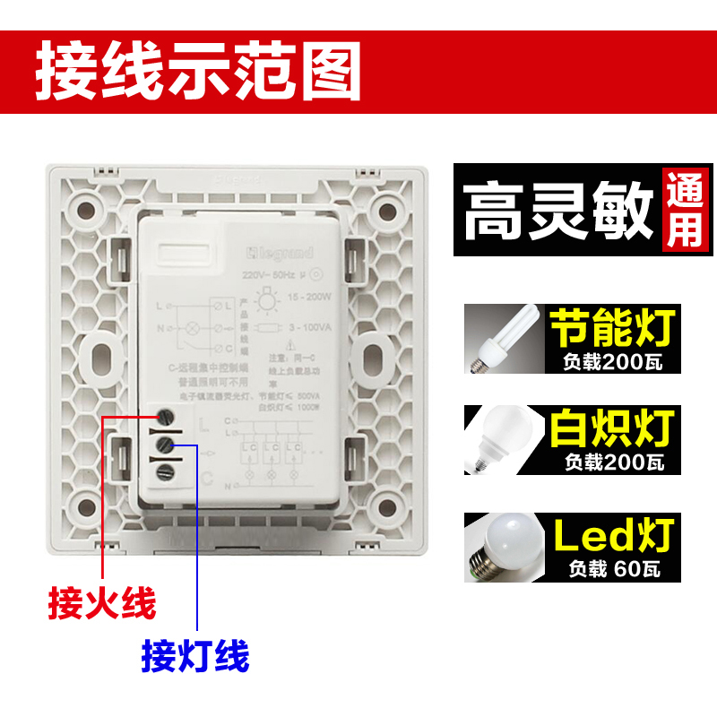 tcl罗格朗声光控二线开关led声控感应接近面板楼道智能家用金色