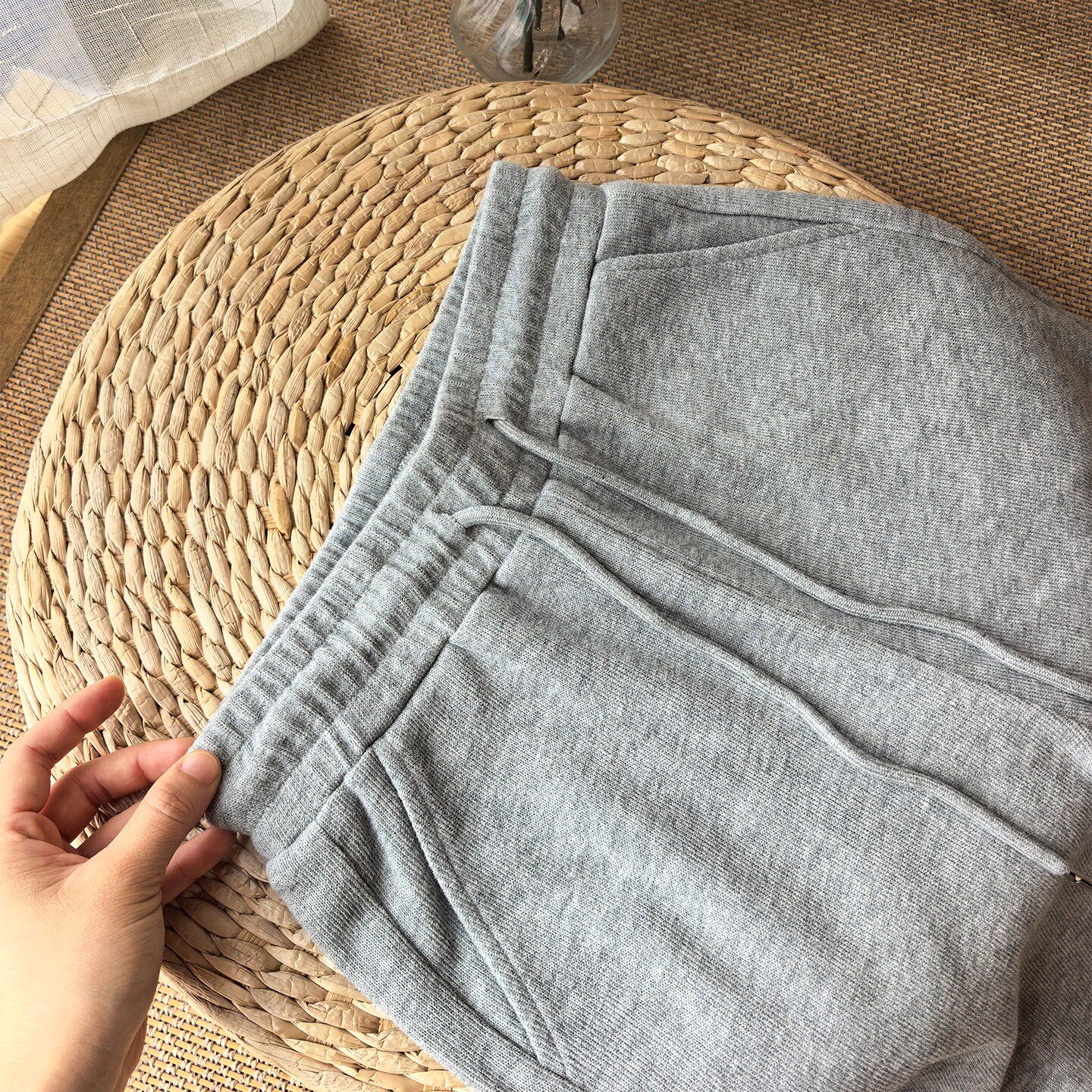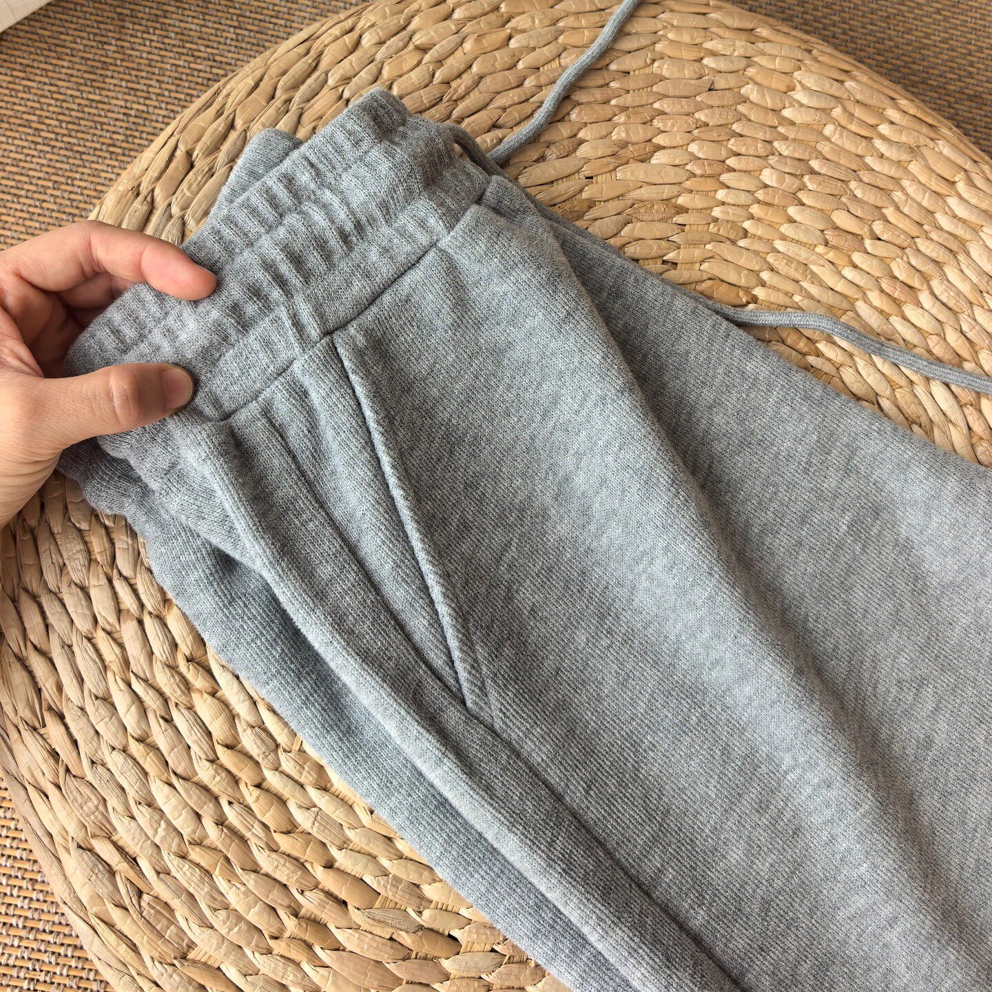 145小个子灰色阔腿裤女秋冬高腰显瘦加绒直筒裤八分宽松运动卫裤9