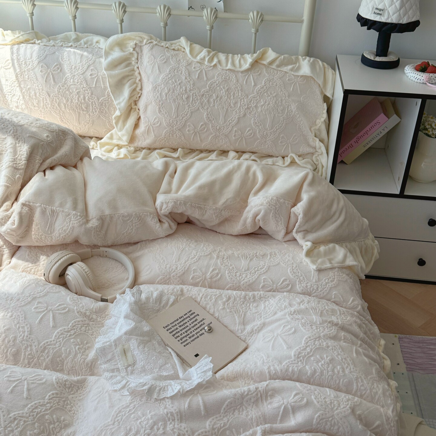 梨梦 复古法式秋冬保暖牛奶绒四件套床单被套珊瑚绒床笠床上用品
