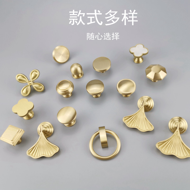 黄铜柜门新中式衣柜橱柜抽屉北欧把纯铜圆厨柜厨房简约柜子拉手