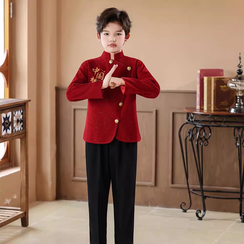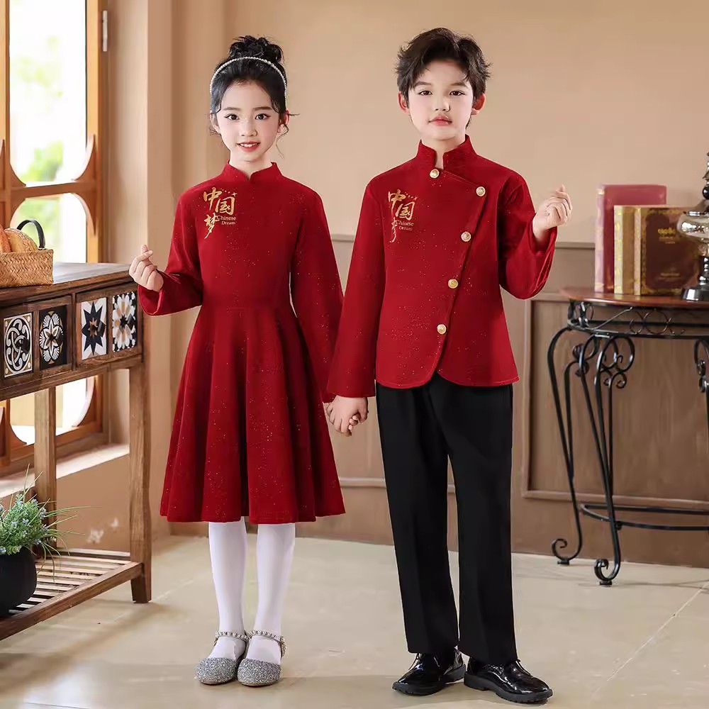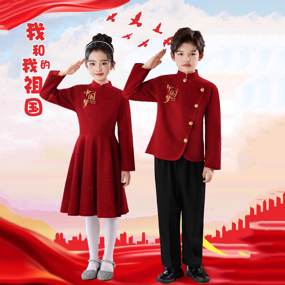 元旦儿童合唱演出服喜庆开门红中国风中小学生诗歌朗诵表演服装