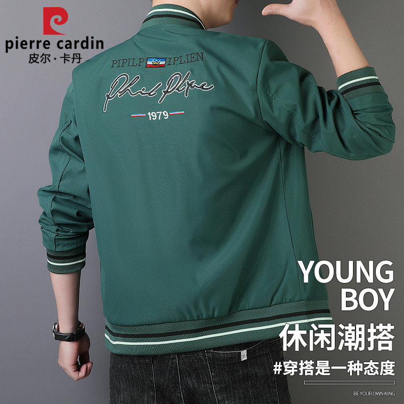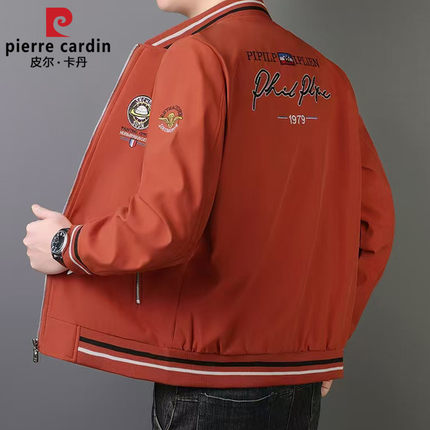 皮尔卡丹男士春秋季刺绣时尚夹克外套高档休闲帅气韩版潮流棒球服